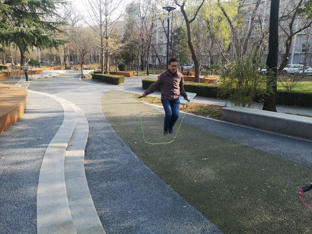 花式跳绳踢毽赛。11月26日,宇航楼东侧的小花园里,老师们在冬日暖阳的照耀下,精神抖擞、运筹帷幄,踢着毽子跳着绳,感受着户外运动的乐趣。