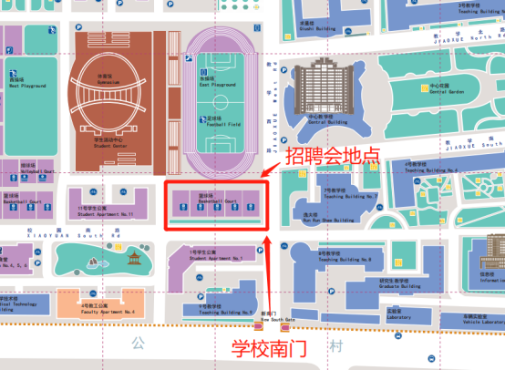 3.用人单位需要从学校南门进校,进校后按照指定路线直接前往招聘场地布置现场。
