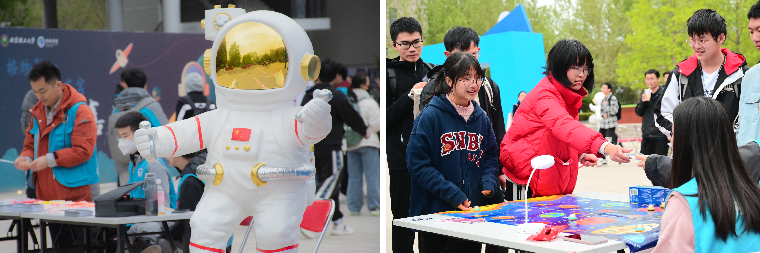 2023年航天嘉年华,将航天元素融入游戏互动,以喜闻乐见、智趣结合、沉浸式的体验的活动形式,让学子们在体验过程中感受“航天精神”,汲取前进力量,当晚600余名师生参与其中。4月份 ,还举办了“黏土快乐星球”“宇宙星空DIY”,“光夜跑”“月球、奇遇手工DIY”等系列文体活动,让同学们可以在科研学习之余,调节身心,探索“深空苍穹”。